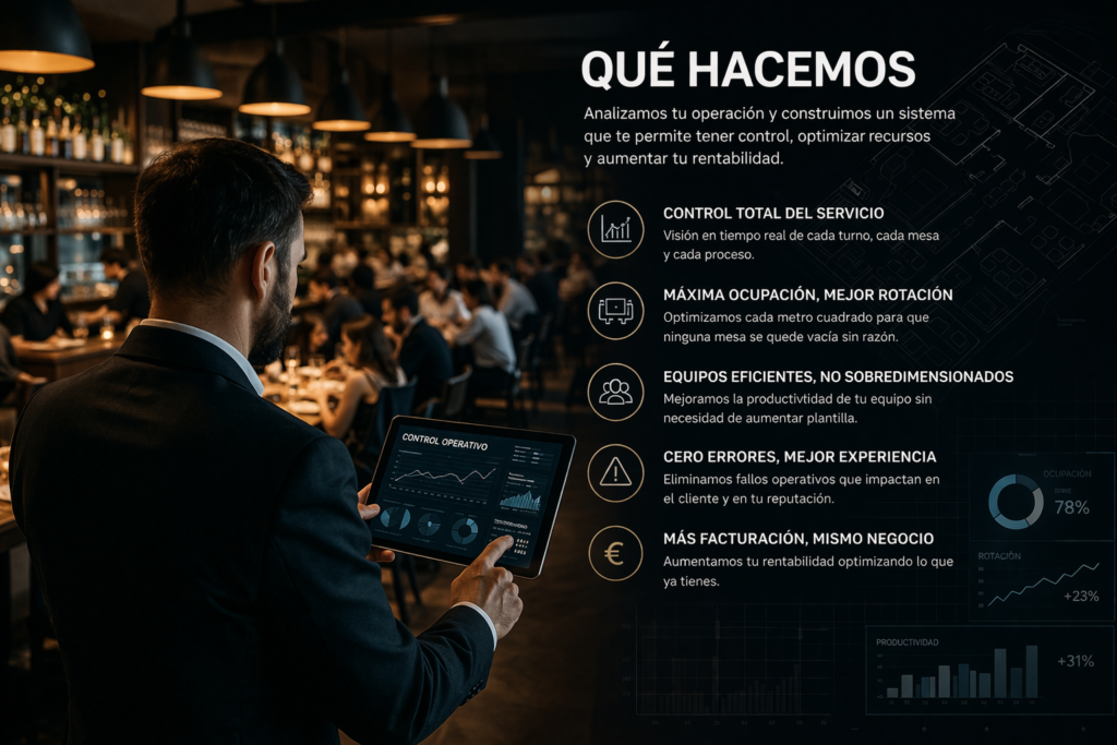 Reestructuramos negocios de hostelería para que operen con más control, más eficiencia y mejor rentabilidad.